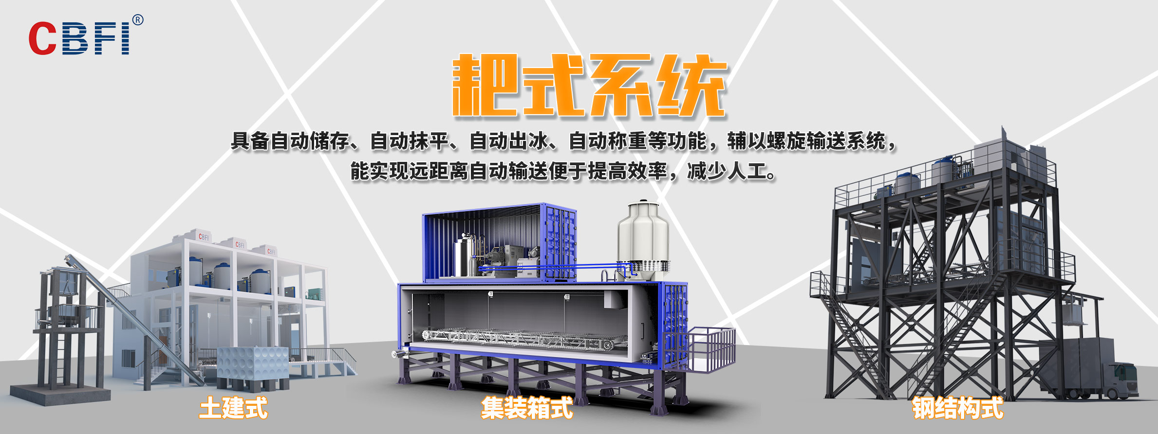 廣州冰泉制冷設備有限責任公司(商標CBFI),大型氟制冷制冰設備行業(yè)開拓者,是一家立足國內(nèi)、面向全球,集大型食用制冰設備、大型工業(yè)制冰設備、高端商用制冰機、成套制冰系統(tǒng)的研發(fā)、設計、制造、銷售、售后服務于一體的創(chuàng)新創(chuàng)業(yè)型高新技術(shù)企業(yè),是大型冰廠和冷庫工程解決方案服務商。